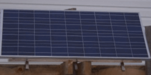 Providing lighting in 2 rooms — the bathroom and a bedroom — the project owner is very pleased with the results of this small solar PV system and is thinking of adding other lights in the basement over the winter. This system also provides power to his refrigerator for between 5–10 hours per day. The owner installed the system themselves in 2009, and is happy to report there have been no glitches since then.