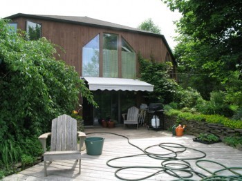 This passive solar, 232 m2 (2500 sq. ft.) home is located on a scenic, south facing slope. It is located on 2.0 hectares (5 acres) of waterfront property, facing the Saint John River and a lake. The home has lots of natural light, with each room receiving direct natural light at some point in the year.